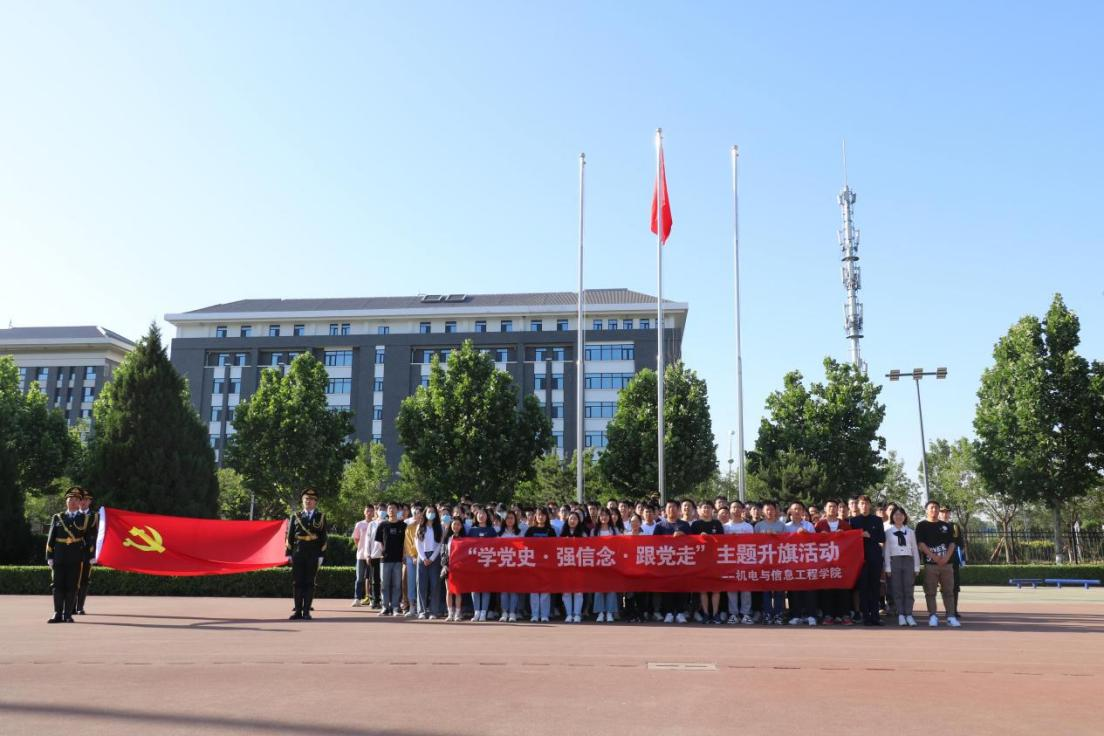 qm球盟会沙河校区师生党员开展“学党史·强信念·跟党走”主题升旗活动