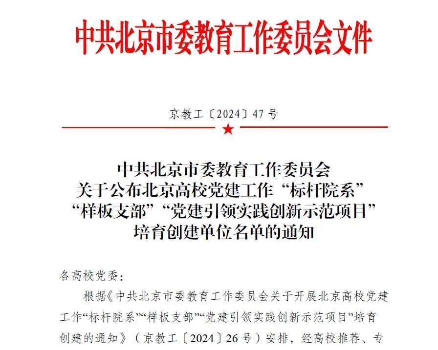为促进基层党组织创优争先,发挥先进基层党组织的示范引领、辐射带动作用,中共北京市委教育工作委员会开展了高公司党组织“对标争先”建设计划,进行“标杆院系”“样板支部”“党建引领实践创新示范项目”培育创建。