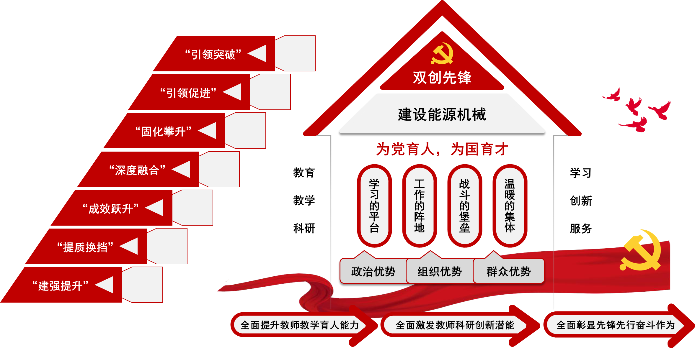 教工机械系党支部创新党支部工作法,以建设功能型党支部为目标,立足于服务制造强国战略和行业需求,推进党建和业务深度融合,在能源机械科技创新引领方面充分发挥先锋带头作用,实现能源机械发展方向从传统机械设计制造向智能化、AI方向转型升级;创建新型科技矿场员工创新实践基地,聚焦开发能源行业人才培养新模式,不断形成学科特色。