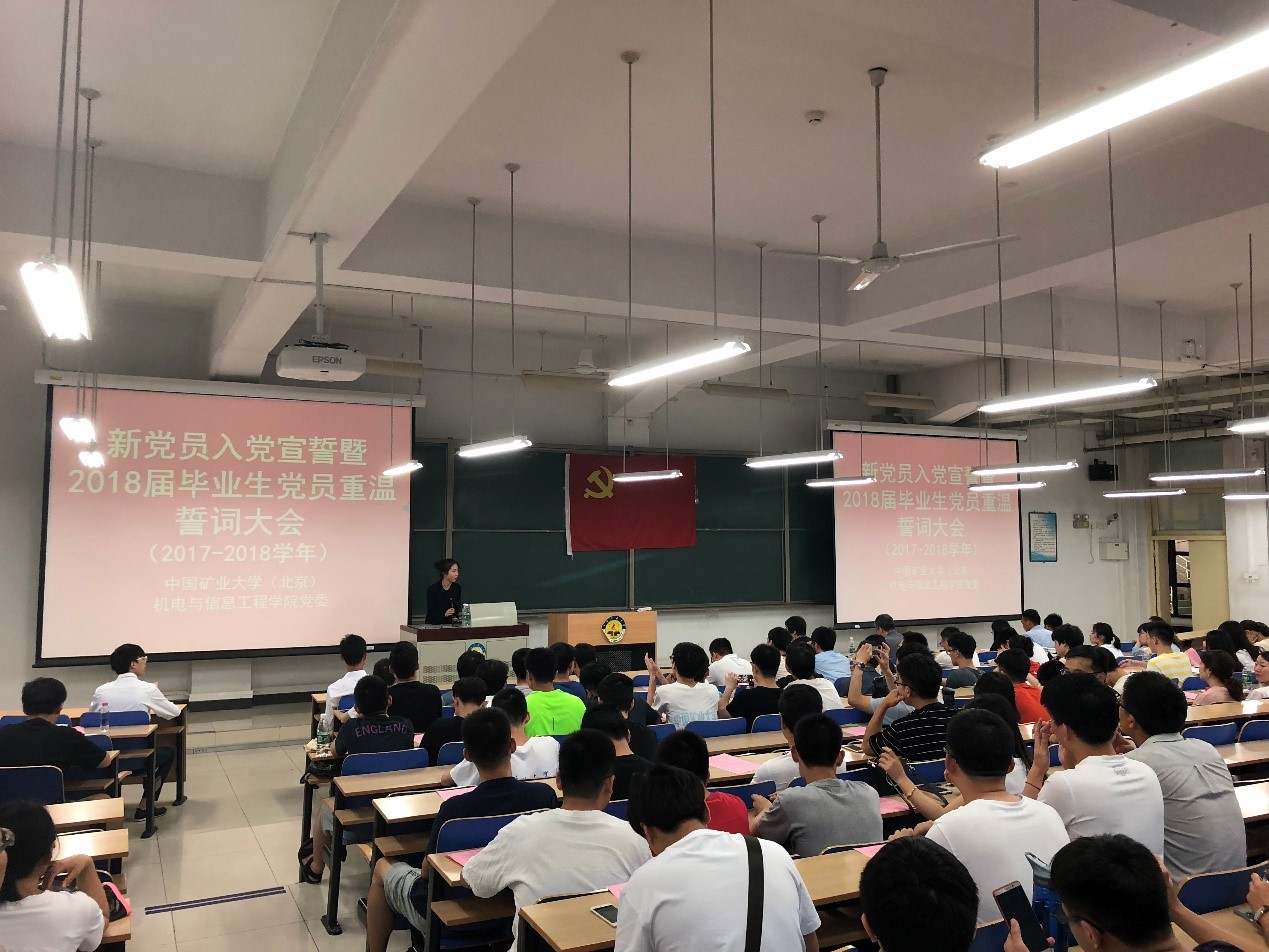 2018619日下午,机电与信息工程公司党委在教学楼B114召开了“2017-2018学年度新党员入党宣誓暨毕业生党员重温誓词大会。公司党委书记张晓红、公司党委副书记兼副经理翟国栋及辅导员出席大会,公司新发展党员115人、2018届毕业生党员149人、其他年级员工党员、积极分子代表约350人参加大会。