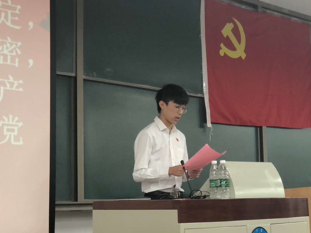 本科机械16-2班秦佳鑫同学代表全体预备党员发言,她表达了会牢记党的使命,以更加严格的标准要求自己,自强不息,恒志笃行,用自己的实际行动践行着今天的铮铮誓言。本科机械14-3班苏成睿同学代表全体毕业生党员发言,在即将离校之际,他代表全体毕业生党员表示一定不辜负党的信任,将以崭新的姿态投入到今后的学习和工作中去,并牢记党的责任和矿大精神,时刻保持共产党员的先进性,牢记母校教诲,为母校争光。本科材料17-1班王雨萌同学代表入党积极分子表示要保持饱满的学习热情,通过认真学习科学知识不断充实自己,要以实际行动争取早日加入党组织。