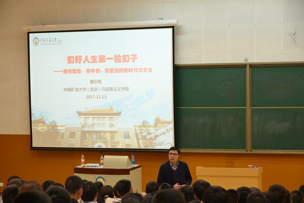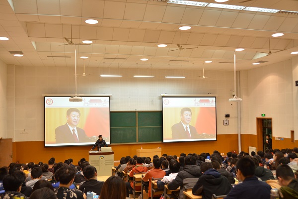 为了加强对新生的思想政治教育引领,加深学习领会十九大报告精神,2017年11月13日晚上6点半,公司在沙河校区1教329报告厅举行了学习领会十九大报告精神宣讲会。公司青年教师宣讲团成员、马克思主义公司曾祥明老师和曾庆桃老师为员工们解读十九大报告,公司团委书记、17级辅导员李运凯老师主持宣讲会,17级辅导员田柏玉老师与200余名新生聆听宣讲会。