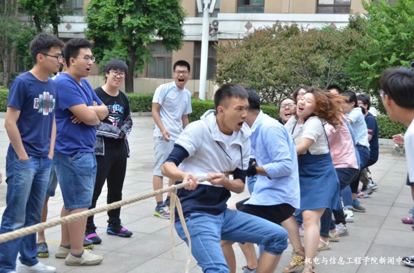 16时许,比赛正式开始。虽然当天阴雨绵绵,运动员和观众们的心情丝毫没有受到天气影响,都积极投入到比赛当中。本次比赛以班级为单位,来自15级和16级共13支代表队参加了比赛。此次拔河比赛夺得冠军的是电气15-2班,亚军是信工15班,季军是电气15-3班。