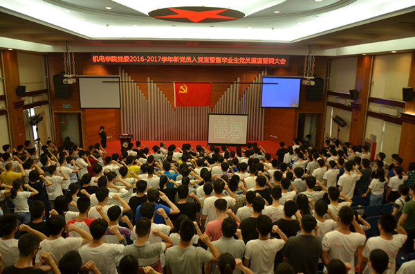 为进一步加强对新发展的预备党员的思想教育,增强毕业生党员的责任感和意识感,机电与信息工程公司党委于2017年6月22日下午在民族楼407召开了“2016-2017学年度新党员入党宣誓暨毕业生党员重温誓词大会”。公司党委书记张晓红、党委副书记兼副经理翟国栋及公司全体辅导员出席大会,公司新发展党员130人、2017届毕业生党员219人及部分入党积极分子代表约370人参加大会。大会由公司党委秘书、博士研究生辅导员杨恬主持。