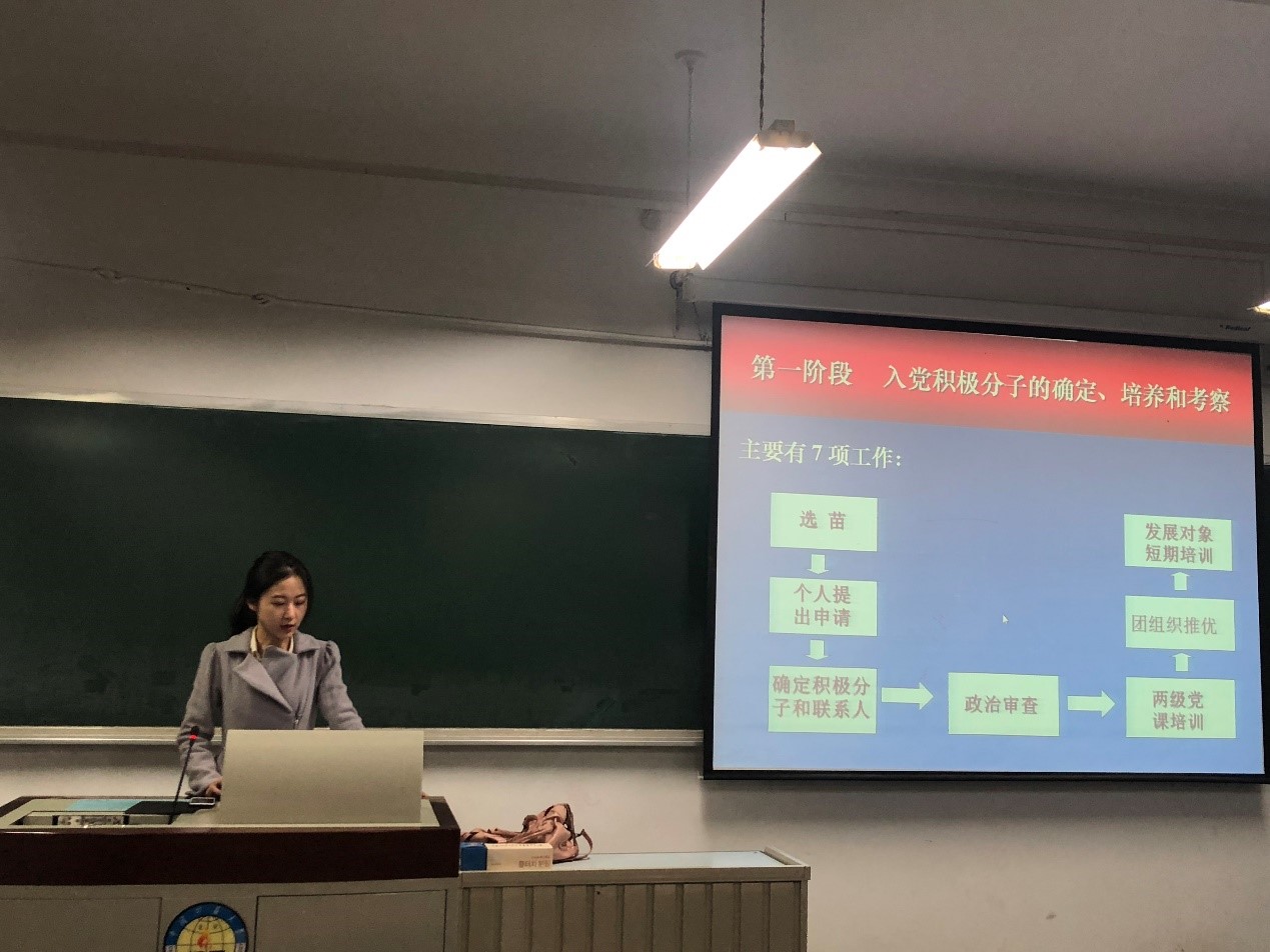 第二讲,张晓红以《明确标准,端正入党动机,以实际行动争取早日加入中国共产党》为主题进行讲课。