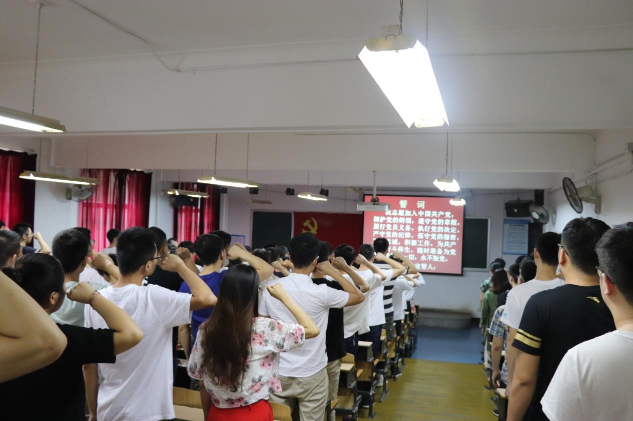 为深入学习宣传贯彻十九大精神,继续践行“两学一做”学习教育,坚定员工党员理想信念,2019年6月21日下午,机电与信息工程公司党委在理化楼206召开了“2018-2019学年度新党员入党宣誓大会”。公司党委书记张晓红及辅导员出席大会,公司117名新发展党员、毕业生党员、员工支部书记、入党积极分子代表等共150余人参加大会。