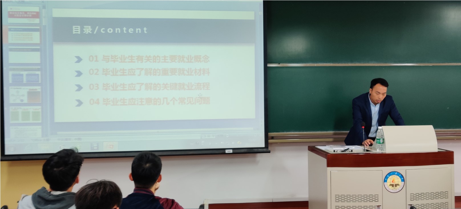 研究生辅导员曹洪治针对就业政策、就业手续办理流程、就业注意事项、简历制作等做了详细的讲解和具体指导。