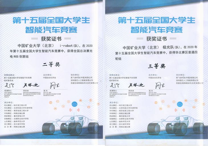 8月24至26日,第十五届全国老员工智能汽车创意组全国总决赛在南京信息工程大学举办。“i-robot”队在比赛中沉着应战,稳定发挥,快速完赛,获得全国总决赛二等奖的好成绩。