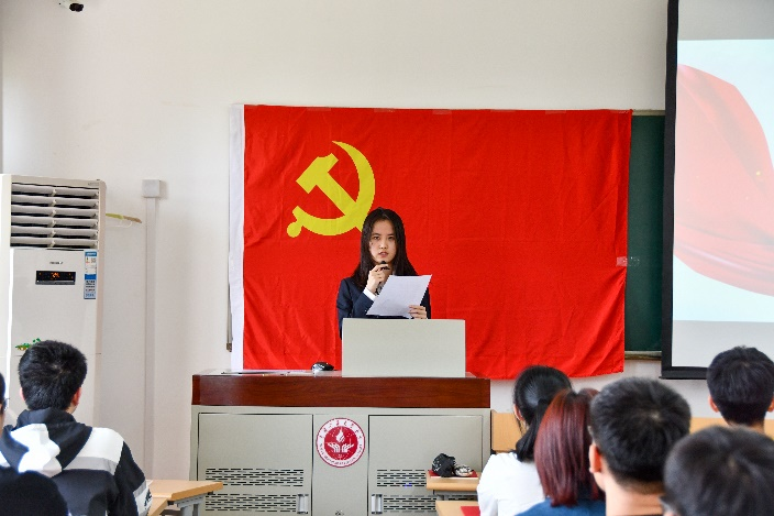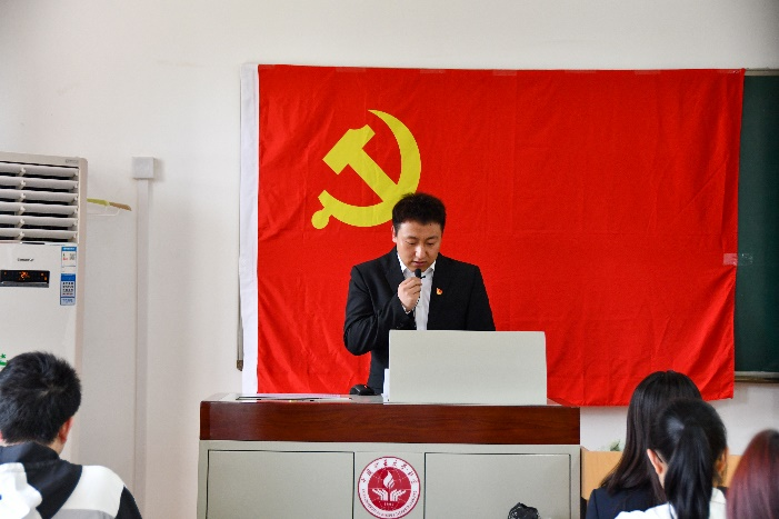 鲜艳的党旗,简而有力地为现场渲染出庄严隆重的气氛。本次大会主要有六项内容,在激昂的《国际歌》歌声中,庄严的入党宣誓仪式正式拉开了序幕,接着杨文凯老师宣读了2021年春季预备党员名单;大会第三项内容是宣誓环节,面对着鲜红的党旗,由杨文凯老师领誓,全体新党员进行了庄严的入党宣誓仪式。“我志愿加入中国共产党,拥护党的纲领,遵守党的章程,履行党员义务……”中国共产党入党誓词共12句80个字,句句精辟,字字铿锵,内涵十分丰富,体现了中国共产党的性质、目标、宗旨、任务、纪律,全面、系统、科学地概括了对共产党员的要求。