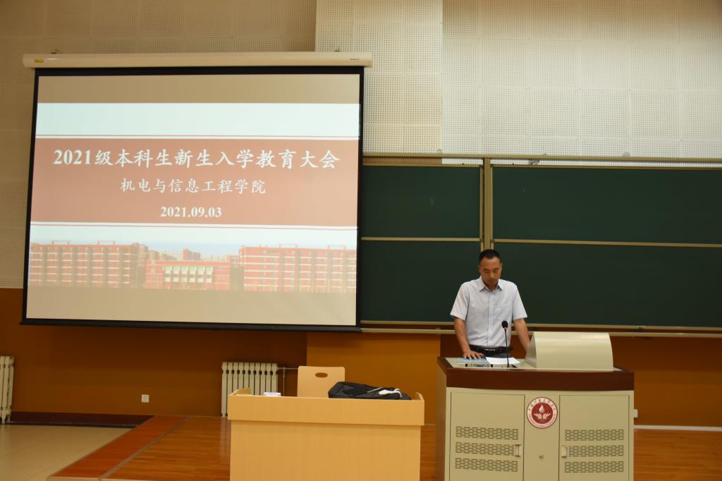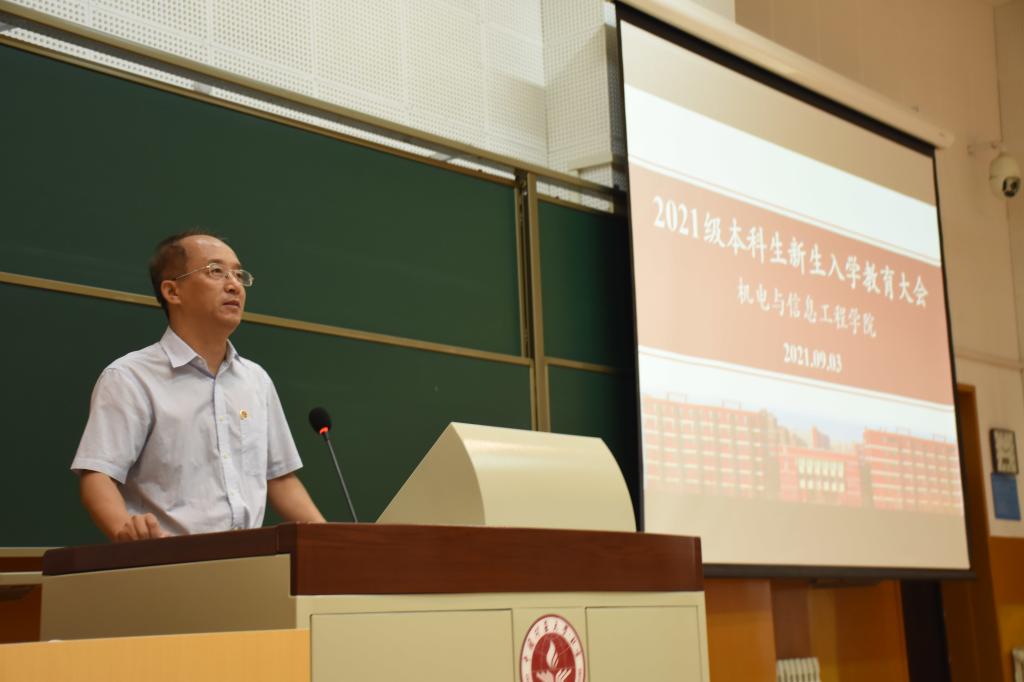 党委书记张晓红对新生进行入学教育。她在讲话中对新生寄予了深厚的期望与殷切的嘱托,希望大家志存高远,脚踏实地,立鸿鹄之志把个人的理想追求,融入国家和民族的事业中;注重实践,勇于创新,通过实践做到知行合一、学以致用。她提醒大家,在校期间注意防范各类诈骗,提高警惕,抵制校园传教渗透,保障人身安全。她指出,今年是中国共产党成立100周年,在庆祝中国共产党成立100周年大会上,习近平总书记对青年寄予厚望,中国青年要以实现中华民族伟大复兴为己任,不负时代,不负韶华,不负党和人民的殷切期望!大家要始终牢记中华民族伟大复兴之梦想,为人生理想,为国之理想不懈奋斗,希望同学们能秉承“明德至善 好学力行”的校训精神,发扬非凡机电的优良传统,为人生交上一份满意的答卷。