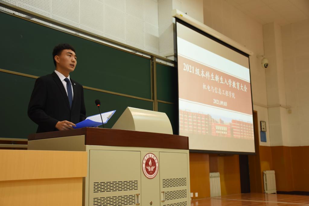 在校生代表2020级机械工程3班的班长兼qm球盟会员工会办公室负责人梁冀凯同学结合自身经历,为新生提供了一些建议,鼓励大家要有一个明确的自我认知、注重学习态度、主动把握每一个机会等,鼓励新生勇于追梦,大步向前。