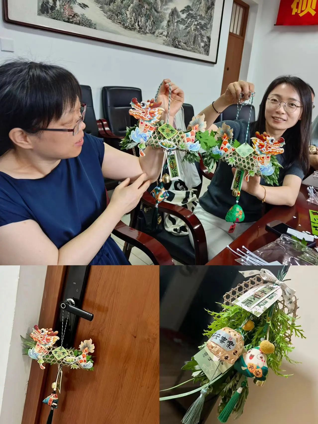 活动的最后,大家共同展示了各自的作品,这些充满创意与个性的艾草挂饰,不仅装点了节日的氛围,也增进了党员们的相互了解和团队凝聚力。通过此次“端午艾飘香,党员心连心”主题党日活动,机械系教工党支部不仅让党员们深刻体验到了端午文化的独特魅力,更提升了党支部的活力和凝聚力。