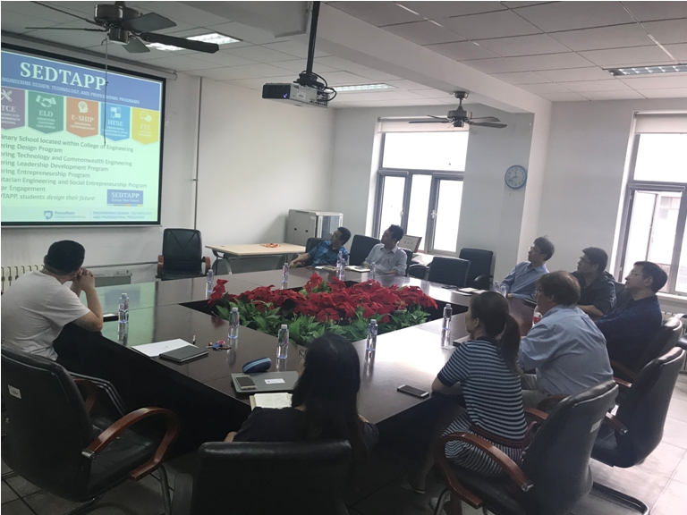 2018年5月10日,美国宾州州立大学Sven G. Bilén教授和Xin Wu教授来公司进行交流。程红副经理、各系系主任、公司本科教学秘书参加了座谈。