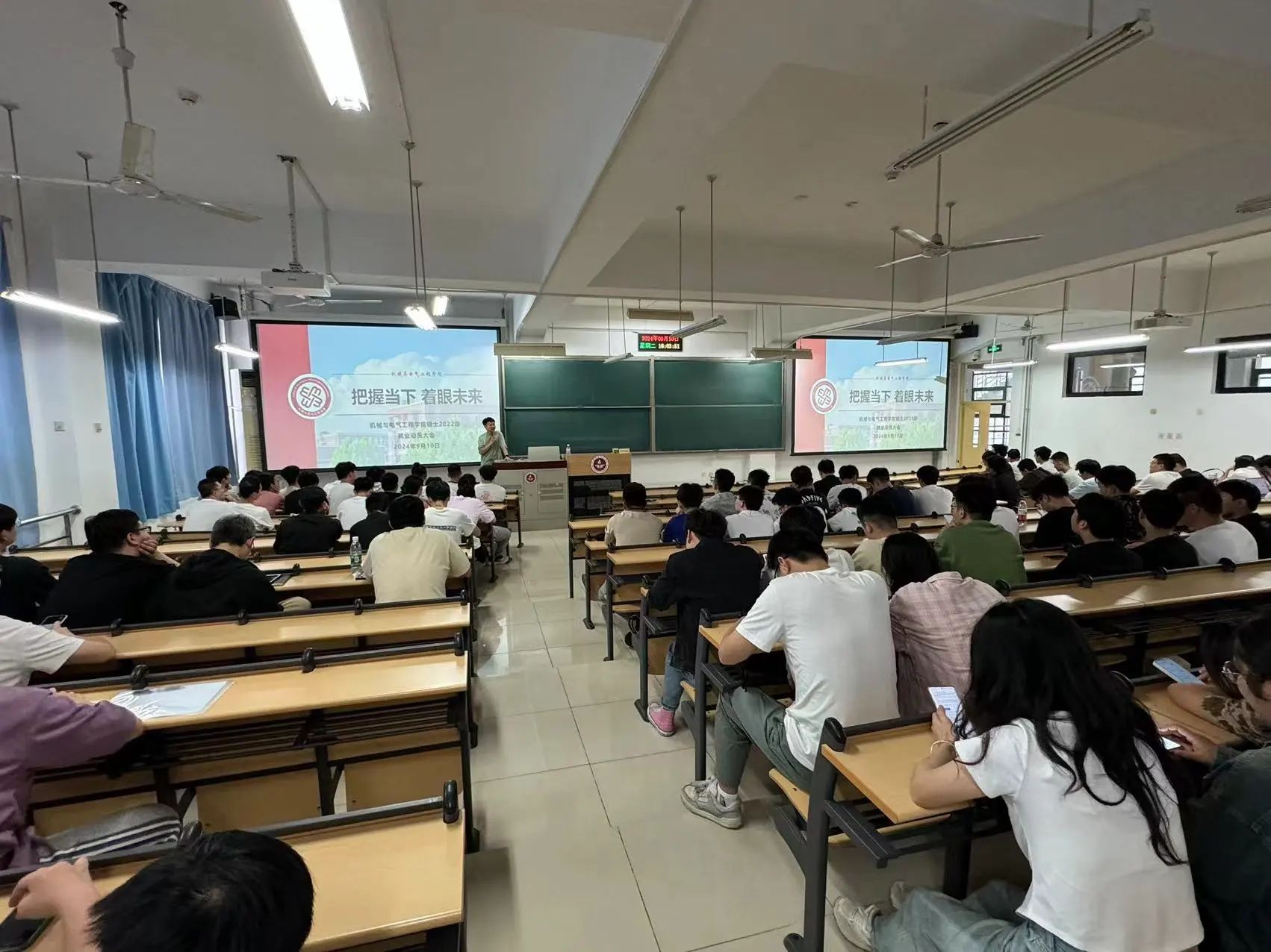 9月13日下午,公司召开本科2025届毕业生年级大会暨就业升学动员大会。本科生辅导员张宇宏从考研升学、就业求职、防范就业实习陷阱等三个方面进行讲解,帮助毕业生了解就业形势,做好从校园到就业市场的心理转变,以更加积极主动的心态迎接未来的挑战。